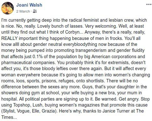 Lisa T Mullin @LisaTMullin So where does trans women (and that's only who she cared about) fit into this?